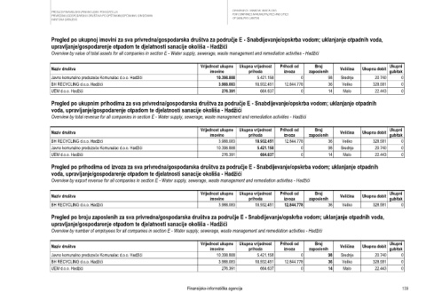 Overview by total revenue for all companies in section E - Water supply, sewerage, waste management and remediation activities - Hadžići