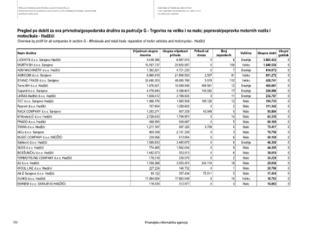Overview by profit for all companies in section G - Wholesale and retail trade; reparation of motor vehicles and motorcycles - Hadžići