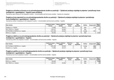Overview by export revenue for all companies in section I - Accommodation and food service activities - Vogošća (no companies)