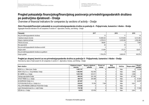 Aggregate financial indicators for all companies in section A - Agriculture, forestry, and fishing - Orašje