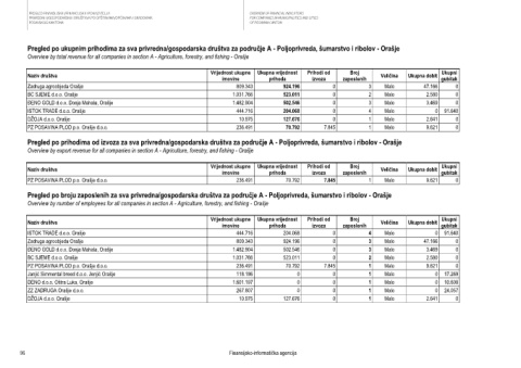 Overview by total revenue for all companies in section A - Agriculture, forestry, and fishing - Orašje