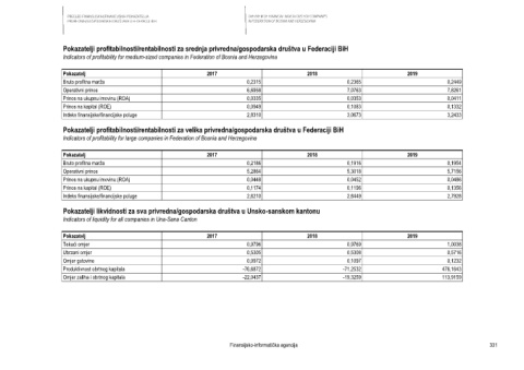 Indicators of profitability for medium-sized companies in Federation of Bosnia and Herzegovina