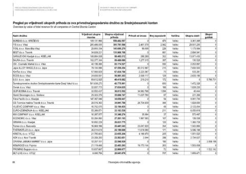 Pregled po vrijednosti ukupnih prihoda za sva privredna/gospodarska društva za Srednjobosanski kanton