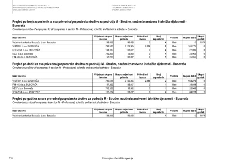 Overview by profit for all companies in section M - Professional, scientific and technical activities - Busovača