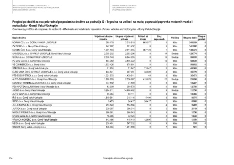 Overview by profit for all companies in section G - Wholesale and retail trade; reparation of motor vehicles and motorcycles - Gornji Vakuf-Uskoplje