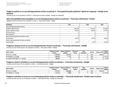 Aggregate financial indicators for all companies in section L - Real estate activities - Kiseljak