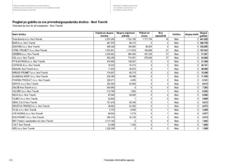 Pregled po gubitku za sva privredna/gospodarska društva - Novi Travnik