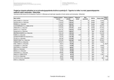 Overview by total revenue for all companies in section G - Wholesale and retail trade; reparation of motor vehicles and motorcycles - Doboj-Istok