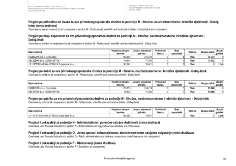 Pregled po prihodima od izvoza za sva privredna/gospodarska društva za područje M - Stručne, naučne/znanstvene i tehničke djelatnosti - Doboj-