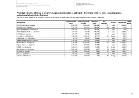 Overview by export revenue for all companies in section G - Wholesale and retail trade; reparation of motor vehicles and motorcycles - Gračanica