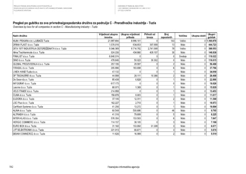 Pregled po gubitku za sva privredna/gospodarska društva za područje C - Prerađivačka industrija - Tuzla