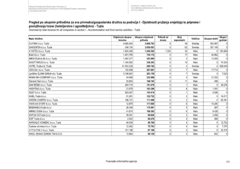 Overview by total revenue for all companies in section I - Accommodation and food service activities - Tuzla