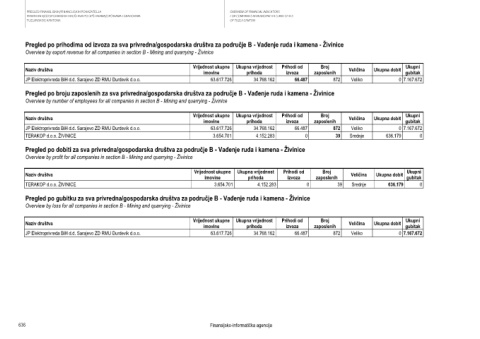 Pregled po dobiti za sva privredna/gospodarska društva za područje B - Vađenje ruda i kamena - Živinice