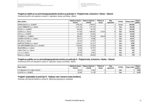 Pregled po dobiti za sva privredna/gospodarska društva za područje A - Poljoprivreda, šumarstvo i ribolov - Glamoč