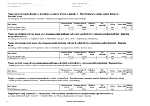 Pregled po gubitku za sva privredna/gospodarska društva za područje N - Administrativne i pomoćne uslužne djelatnosti - Bosanska Krupa