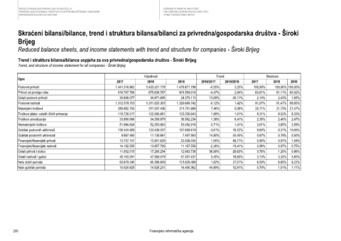 Reduced balance sheets, and income statements with trend and structure for companies - Široki Brijeg