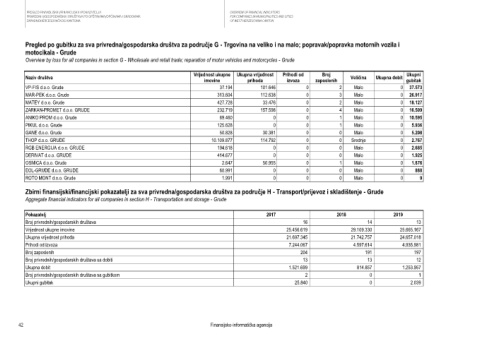 Zbirni finansijski/financijski pokazatelji za sva privredna/gospodarska društva za područje H - Transport/prijevoz i skladištenje - Grude