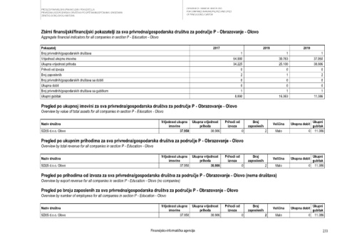 Zbirni finansijski/financijski pokazatelji za sva privredna/gospodarska društva za područje P - Obrazovanje - Olovo