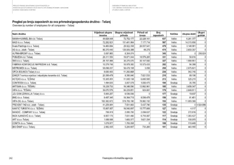 Pregled po broju zaposlenih za sva privredna/gospodarska društva - Tešanj