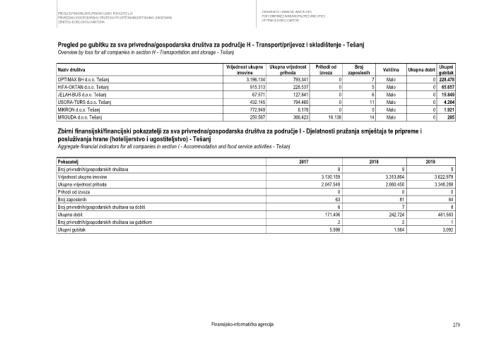 Overview by loss for all companies in section H - Transportation and storage - Tešanj