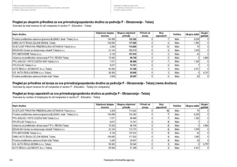 Overview by total revenue for all companies in section P - Education - Tešanj