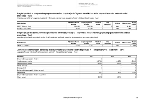 Aggregate financial indicators for all companies in section H - Transportation and storage - Vareš