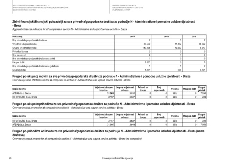 Aggregate financial indicators for all companies in section N - Administrative and support service activities - Breza