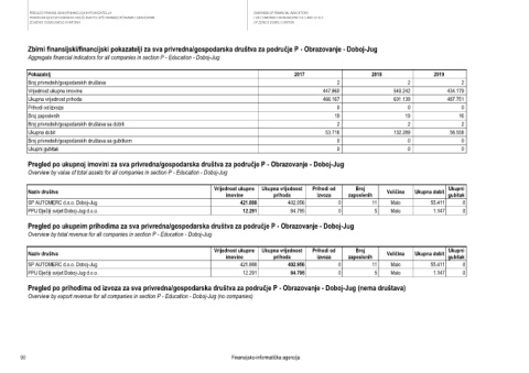Zbirni finansijski/financijski pokazatelji za sva privredna/gospodarska društva za područje P - Obrazovanje - Doboj-Jug