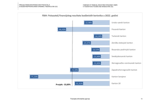 FBiH: Pokazatelj finansijskog rezultata budžetskih korisnika u 2022. godini