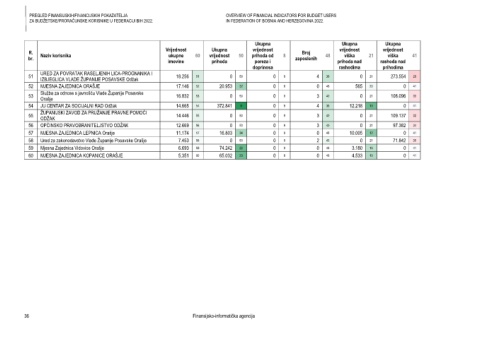 Page 38 - Pregled finansijskih/financijskih pokazatelja za budžetske/proračunske korisnike u Federaciji BiH 2022.