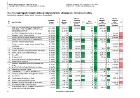 Page 56 - Pregled finansijskih/financijskih pokazatelja za budžetske/proračunske korisnike u Federaciji BiH 2022.