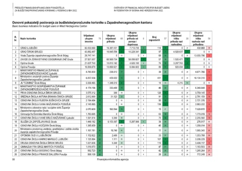 Page 60 - Pregled finansijskih/financijskih pokazatelja za budžetske/proračunske korisnike u Federaciji BiH 2022.