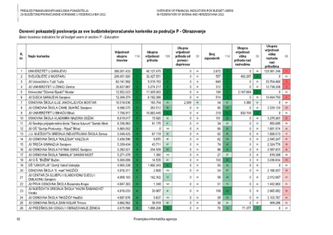 Page 94 - Pregled finansijskih/financijskih pokazatelja za budžetske/proračunske korisnike u Federaciji BiH 2022.