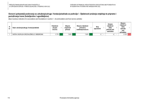 Page 112 - Pregled finansijskih/financijskih pokazatelja za udruženja/udruge i fondacije/zaklade u Federaciji BiH 2022.