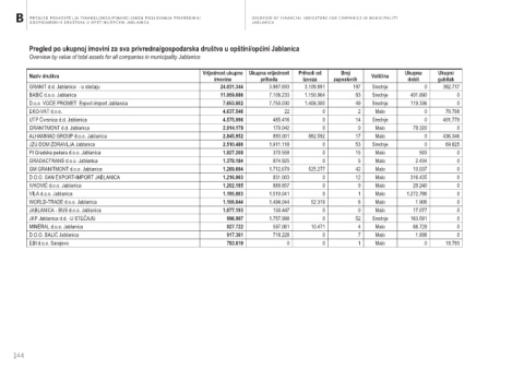 Pregled po ukupnoj imovini za sva privredna/gospodarska društva u opštini/općini Jablanica