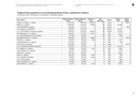 Pregled po prihodima od izvoza za sva privredna/gospodarska društva u opštini/općini Jablanica Pregled po broju zaposlenih za sva privredna/gospodarska društva u opštini/općini Jablanica