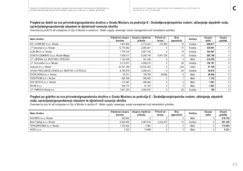 Overview by number of employees for all companies in City of Mostar in section E - Water supply, sewerage, waste management and remediation activities Overview by profit for all companies in City of Mostar in section E - Water supply, sewerage, waste management and remediation activities
