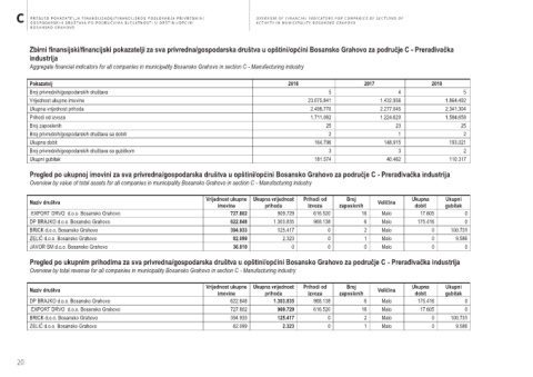 Zbirni finansijski/financijski pokazatelji za sva privredna/gospodarska društva u opštini/općini Bosansko Grahovo za područje C - Prerađivačka