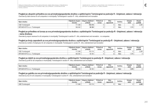 Pregled po ukupnoj imovini za sva privredna/gospodarska društva u opštini/općini Tomislavgrad za područje R - Umjetnost, zabava i rekreacija Naziv društva imovine prihoda izvoza zaposlenih Veličina dobit gubitak