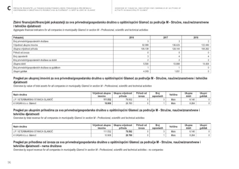 Zbirni finansijski/financijski pokazatelji za sva privredna/gospodarska društva u opštini/općini Glamoč za područje M - Stručne, naučne/znanstvene