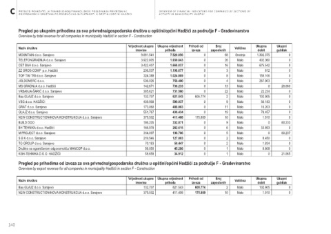 Overview by export revenue for all companies in municipality Hadžići in section F - Construction