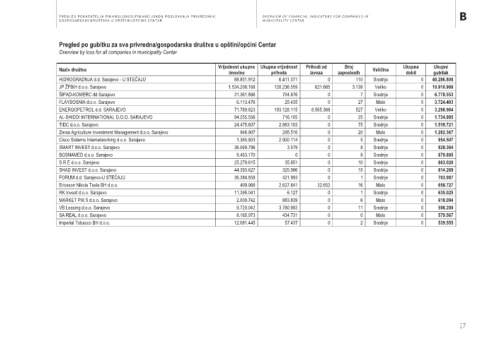 Pregled po dobiti za sva privredna/gospodarska društva u opštini/općini Centar Pregled po gubitku za sva privredna/gospodarska društva u opštini/općini Centar