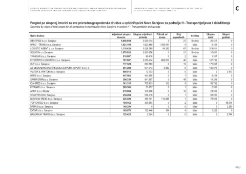 skladištenje Overview by value of total assets for all companies in municipality Novo Sarajevo in section H - Transportation and storage
