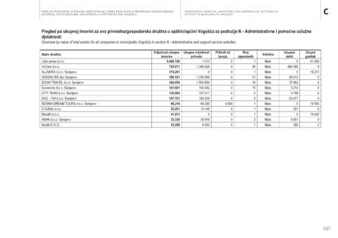 Overview by loss for all companies in municipality Vogošća in section M - Professional, scientific and technical activities Overview by value of total assets for all companies in municipality Vogošća in section N - Administrative and support service activities