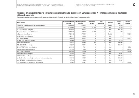 Sarajevska berza - burza d.d. Sarajevo 2.970.188 1.020.402 56.720 11 Malo 2.863 0 VB Leasing d.o.o. Sarajevo 9.720.042 3.780.993 0 11 Srednje 0 598.200