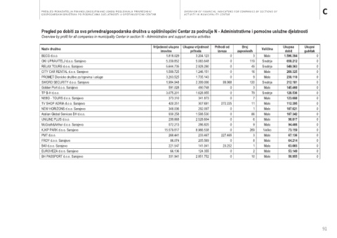 djelatnosti Overview by profit for all companies in municipality Centar in section N - Administrative and support service activities