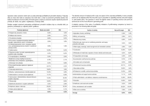 Područje djelatnosti Marža neto dobiti ROI Section of activity Net profit margin ROI