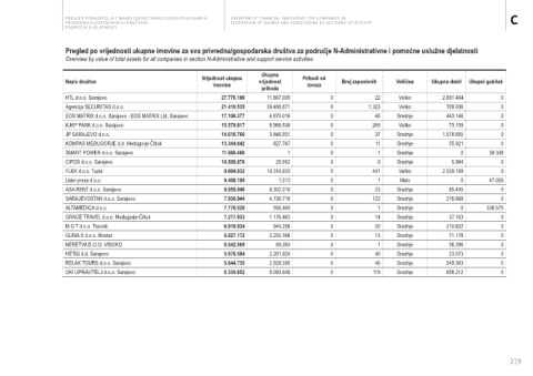 Pregled po vrijednosti ukupne imovine za sva privredna/gospodarska društva za područje N-Administrativne i pomoćne uslužne djelatnosti