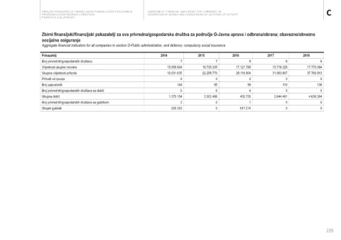 Zbirni finansijski/financijski pokazatelji za sva privredna/gospodarska društva za područje O-Javna uprava i odbrana/obrana; obavezno/obvezno
