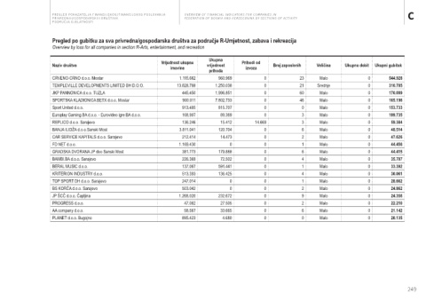 Pregled po gubitku za sva privredna/gospodarska društva za područje R-Umjetnost, zabava i rekreacija